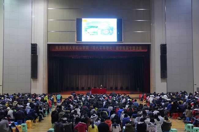 12月19日18时30分,beat365《现代军事理论》教学拓展专题讲座于文体馆成功开展。本次讲座的主讲人为南京大学军事教研室杨新教授,全体大一新生参加讲座。讲座由团委副书记胡新蕲老师主持。