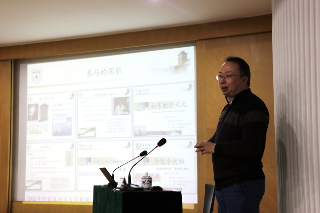 3月29日19时,应beat365英国官方网站教师发展中心和beat365邀请,南京大学天文与空间科学学院副院长罗新炼副教授,在桥头校区沐德苑报告厅作题为“灵魂的呼唤——课程、课堂教学的设计、评价与反思”的教师专业发展讲座。beat365英国官方网站教务处副处长、教师发展中心主任戈晓毅教授,beat365院长张进、副院长王晓庆等出席讲座。讲座由张进院长主持。