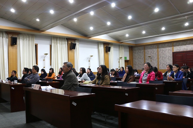 罗新炼教授以“问心无愧做教育”和“高校教师应具备的教师与学生观”为切入点,从教学过程设计、教学效果评价、教学课程反思三方面系统的阐述教师教学的艺术之道。他强调,授课是门艺术,需要教师对其精雕细琢。在遵循教学规律,传授知识的同时激发学生潜能。作为教师,不仅要以尽职的工作态度、高尚的人格魅力和融洽的师生关系完成教学效果的达成,还要学会教育反思,在自查、自省、自纠中提高自我教学能力与教育境界。罗新炼教授还与在座教师进行了互动交流,并认真解答了相关问题。