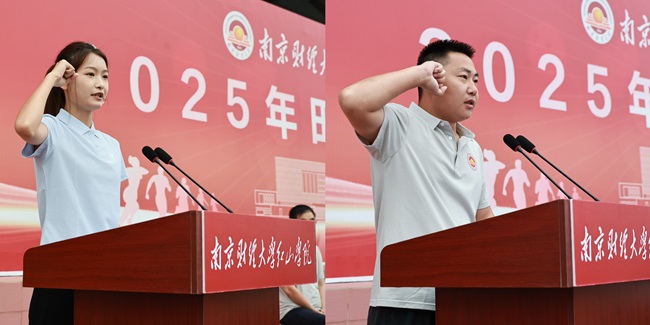 运动员金融2452班侯如同学,裁判员杨怀波老师代表全体运动员和全体裁判员宣誓。