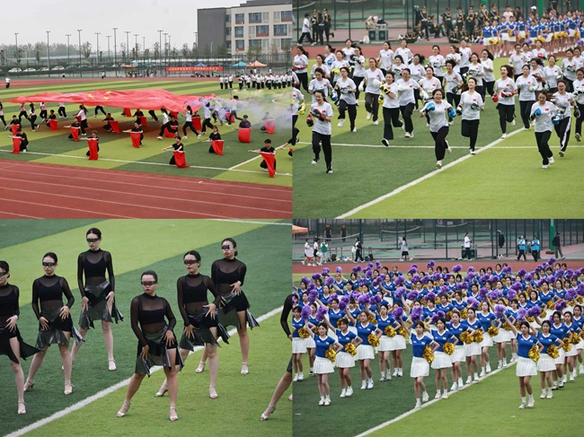 铿锵有力的音乐响起,我校特色体育运动项目拳击团体表演开始,身着黑衣的武者挥舞红旗,以整齐划一的动作闪亮登场。开幕式还进行了《机械纪元》拉丁舞和《活力节拍》啦啦操表演。拉丁舞表演将金属感与舞步碰撞,充满未来科技感;啦啦操队员手持花球,通过变换队形图案,展现运动的活力与韵律,赢得现场观众阵阵掌声。