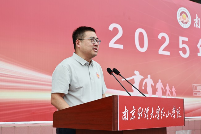 李连军院长致开幕词。他代表学院向本届运动会的举行表示热烈的祝贺,向精心筹备运动会的全体工作人员表示衷心的感谢,向即将奔赴赛场、奋力拼搏的运动员们致以诚挚的问候。李连军院长表示,“体育强则中国强,国运兴则体育兴”,体育的价值不止于竞技场上的胜负结果,更在于它所孕育的拼搏精神与坚韧意志。他希望运动员们在赛场上能够展示“拼”的精神,希望老师同学们在参与中读懂“和”的意义,希望全体红山人都能从体育中汲取“进”的力量,让拼搏的脚步回荡在校园的每一个角落,让团结的力量汇聚成红山发展的磅礴动能。