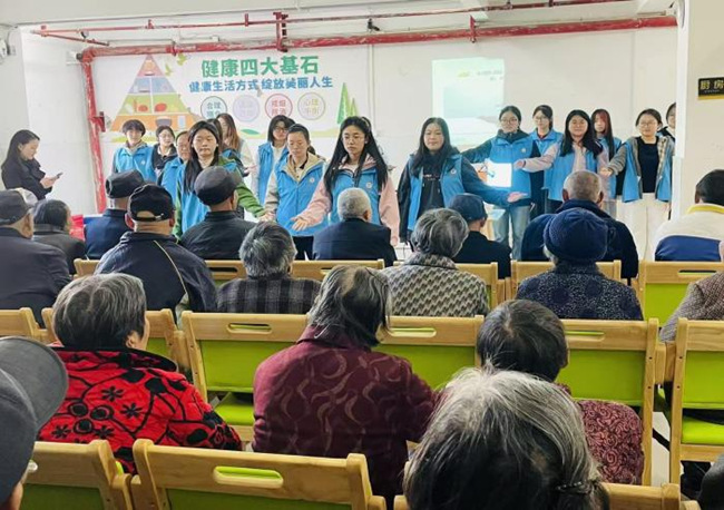 活动伊始,志愿者手势舞《感恩的心》拉开了序幕,整齐划一的动作搭配真挚动人的旋律,瞬间点燃了现场氛围,老人们脸上纷纷露出欣慰的笑容。随后志愿者开展了立冬健康常识问答,围绕冬季保暖、饮食养生、疾病预防等实用话题设计问题,在轻松互动中帮助老人掌握冬季健康知识。