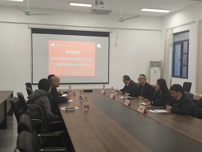 11月26日下午,国际经贸学院与东吴证券股份有限公司校企合作座谈会在智圆楼B222会议室举行。东吴证券股份有限公司秀财事业部总经理助理、南京分公司副总经理楚殿斌,营业部总经理王鹏,人事经理周知,团队负责人伏鑫,国际经贸学院党总支书记、院长刘志国,团总支书记兼学工秘书宋婧出席会议。座谈会由国际经贸学院党总支副书记陈玉龙主持。