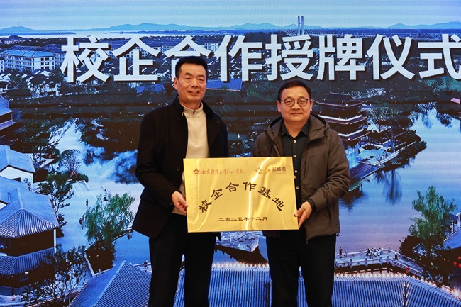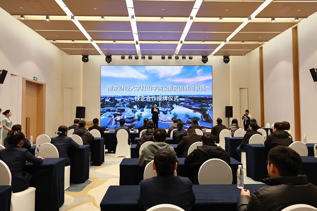 仪式现场,工商管理学院张太海院长与南京固城湾景区牛耀凯总经理代表校企双方签署校企合作协议。李连军院长与朱乾辉董事长共同为产教融合“校企合作基地”揭牌,标志着双方合作正式落地,校企协同发展迈入新阶段。