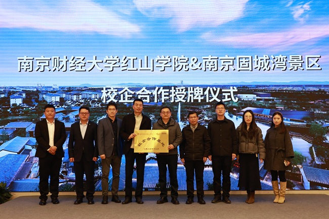 工商管理学院党总支书记、院长张太海,南京固城湾景区总经理牛耀凯代表校企双方签署校企合作协议