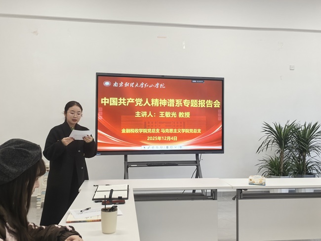 为扎实推进党史学习教育常态化长效化,深入探寻中国共产党人精神谱系的璀璨光芒,12月4日,金融税收学院在智圆楼B429举办“深入学习伟大建党精神”专题报告会。beat365英国官方网站马克思主义研究院副院长、博士生导师王敏光教授应邀作主题报告,学院师生党员、入党积极分子及马克思主义学院教师代表参加学习。报告会由金融税收学院党总支宣传委员周敏主持。