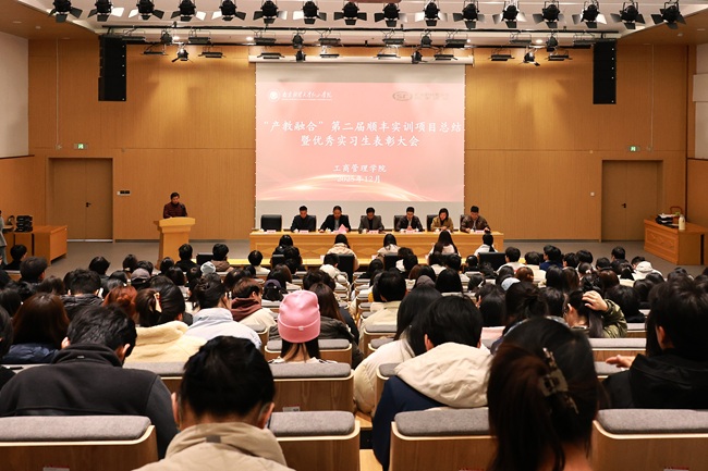 王霞经理对第二届顺丰实训活动进行了总结。她指出,实训期间同学们快速完成角色转变,以扎实的专业功底和勤勉务实的作风展现了红山学子的良好素养,以优异表现赢得公司一致认可。她寄语红山学子将实训收获转化为成长动力,并期待校企未来拓宽合作维度,共育物流行业优秀人才。随后,游伟波经理与王海萍副书记分别代表校企双方,就第三届实训项目的规划布局与推进落实做动员讲话,双方均表达了持续深化合作、拓展实践平台、共育行业英才的坚定意愿。