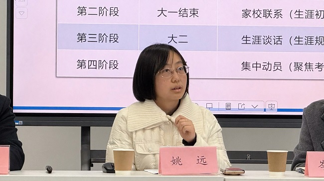分享会上,姚远处长从实际操作层面,全面讲解了通达学院在学生考研升学中的各项管理服务举措。她强调,考研工作应坚持“分类施策、数据赋能、多元助力、全院协同、多管齐下”的工作思路,为学生提供从目标定位、备考规划、志愿指导到心理支持等全方位的服务保障。