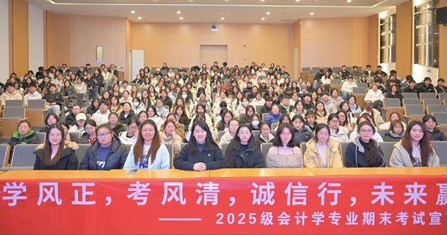 为筑牢新生考风考纪思想防线,强化诚信应考意识,12月22-24日,会计学院组织2025级财务管理、会计学、审计学三大专业学生开展诚信应考主题教育活动,以沉浸式、互动式、常态化模式筑牢学生思想防线。