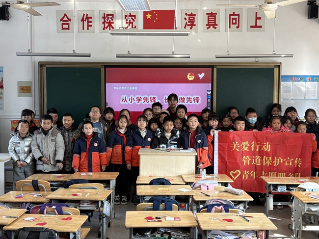 活动依托团中央“少年儿童安全守护计划”平台,聚焦学生成长需求,设置5场分龄主题宣讲。三年级以家国情怀培育为核心,通过国旗国徽认知、中国地图拼图等互动厚植爱国情感;四年级围绕志愿精神传承,开展先锋故事宣讲与小小志愿者宣誓活动;五年级聚焦能源安全,用“西气东输”工程解读与模拟管道设计普及管道保护知识;六年级侧重心理健康,通过“优点轰炸”等互动助力学生塑造阳光心态;混合场以科技创新为主题,通过飞行小实验、吸管搭建挑战激发探索热情。活动形式鲜活、互动性强,宣讲现场获得师生广泛好评。