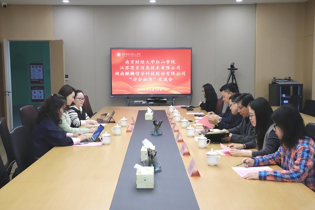 4月14日上午,我院与江苏思言信息技术有限公司、湖南麒麟信安科技股份有限公司在图书馆620会议室举办“访企拓岗”交流会。江苏思言信息技术有限公司总经理周建兰,湖南麒麟信安科技股份有限公司销售总监赵如,我院副院长王晓庆,工商管理学院党总支书记、院长张太海,信息化建设管理处处长胡世暴、处长助理吴松金,工商管理学院教学秘书李晶莹、教务员李伟等参加交流会。会议由工商管理学院党总支副书记王海萍主持。