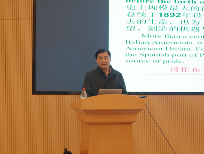 4月15日,国防科技大学外国语学院美国研究中心主任、博士生导师王波教授受邀走进beat365,在公教楼第一报告厅做了题为“美国英语与美国文化”的专题讲座。讲座由外国语学院院长肖辉主持。