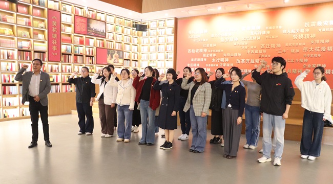 参观结束后,全体党员在庄严的初心纪念墙整齐列队,面向党旗肃立。在学院副院长、法学院、外国语学院党总支书记杨军的领誓下,全体党员高举右拳,庄严重温入党誓词。铿锵有力的誓言回荡在现场,既是对入党初心的回望,也是对使命担当的庄严承诺,进一步强化了党员身份意识、责任意识和宗旨意识。