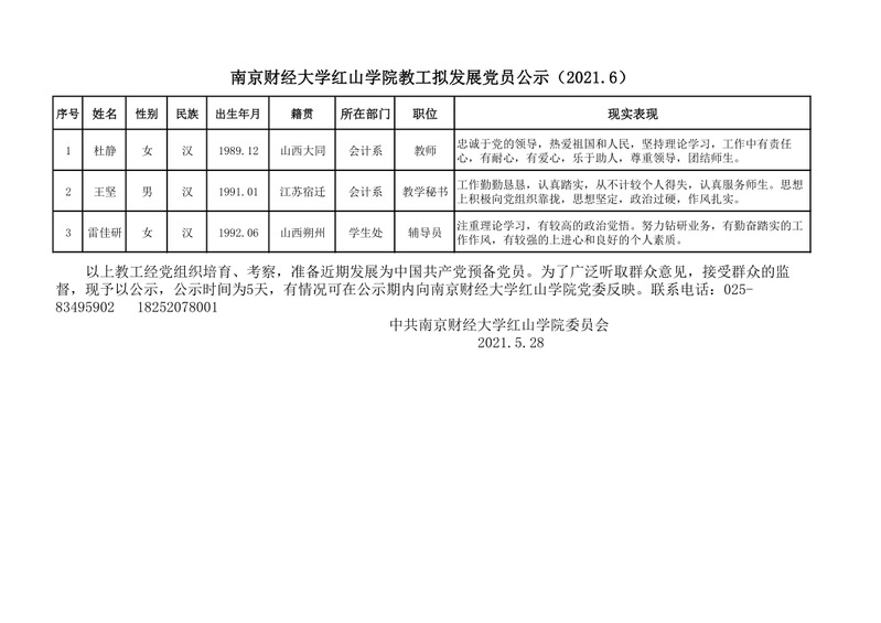beat365英国官方网站教工拟发展党员公示(2021.6)
