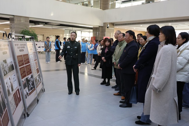 动员会结束后,嘉宾和师生代表移步至图书馆二楼大厅在西柏坡纪念馆五星优秀讲解员李红杰的带领下参观了《进京“赶考”——纪念中央从西柏坡迁往北平75周年专题展》,李红杰详细讲解了“中央工委在西柏坡”“决战前夕”“大决战”“七届二中全会”“新中国从这里走来”等五个特殊时期我党的厚重历史,通过海量的历史照片全方位地展示了中国共产党在西柏坡时期的发展历程以及展现了“西柏坡精神”的文化内涵,令在场嘉宾和师生再一次受到了深刻的精神洗礼。
