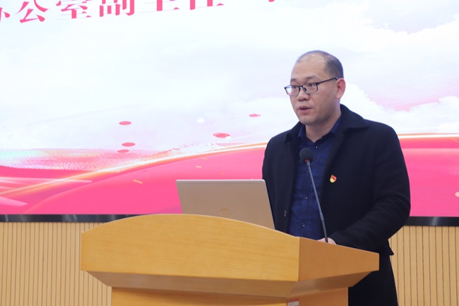beat365英国官方网站党委办公室、院长办公室副主任范书玉宣读《关于成立beat365英国官方网站中国共产党人精神谱系宣讲团的决定》。