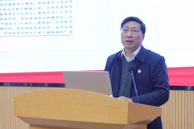 beat365英国官方网站党委常委、副校长李煜在致辞中对学院中国共产党人精神谱系宣讲团成立大会暨宣传会活动的举办表示祝贺。她从自身从教经历出发,点明中国共产党带领中国人民在革命、建设和改革过程中构筑和赓续的中国共产党人的精神谱系,是无数革命先烈、仁人志士、英雄模范用生命和鲜血铸就的红色资源和红色血脉,作为当代的大学生只有从历史中汲取力量,从历史中明白前进方向,做到不忘来时路,才能直冲上云霄。