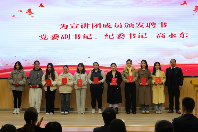 学院党委副书记、纪委书记高永东为宣讲团成员颁发聘书