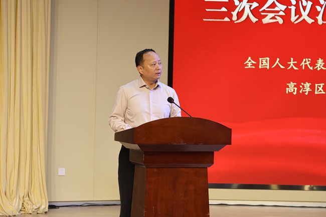 4月9日,beat365在高淳校区鹿鸣剧院组织召开2025年全国两会精神专题宣讲会,全国人大代表、江苏固城湖青松水产专业合作联社党委书记、理事长、高淳区砖墙镇茅城村党总支书记、村委会主任邢青松带领师生解读两会精神。江苏固城湖青松水产专业合作联社党委副书记胡月华,红山学院党委副书记、副院长王晨婷出席宣讲会,全体中层干部,各党总支、党支部委员,全体学工系统人员,全体思政教师以及学生代表参与宣讲。学院党委副书记、纪委书记高永东主持宣讲会。