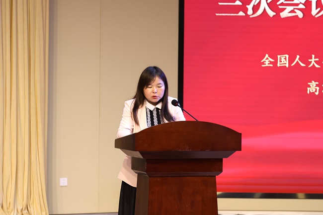 王晨婷副书记致辞。她代表学院向人大代表邢青松莅临beat365宣讲表示热烈欢迎和衷心感谢。她指出,刚刚闭幕的全国两会,是在实现“十四五”规划目标任务的关键之年召开的一次重要会议。习近平总书记在全国两会期间发表的一系列重要讲话精神,为高校和青年学生指明了努力方向。她对参会师生提出三点希望,一是要把“听讲”变成“思考”。不仅要“听”两会精神,更要“想明白”“做起来”。带着问题去学、带着责任去悟。二是要把“触动”变成“担当”。要把学习习近平总书记重要讲话精神带来的思想共鸣和使命意识,转化为主动担当、迎难而上的实际行动。三是要把“学习”变成“成长”。要在学习两会精神中学出政治认同、情感认同和行动自觉,让青春与时代同频共振,让成长和国家发展同向同行。