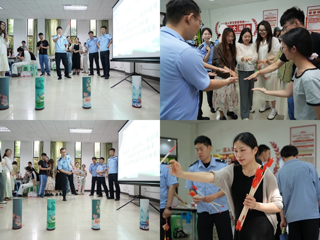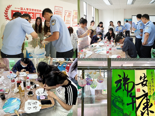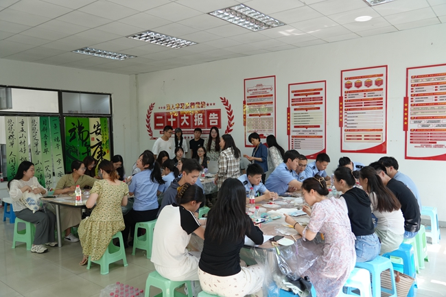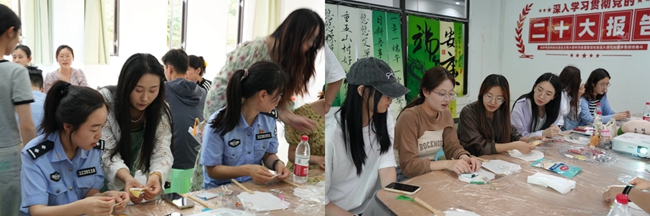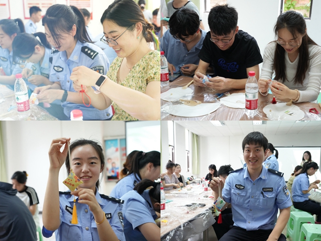 为进一步促进共建单位之间的交流与合作,体验非遗民俗的艺术魅力,增强文化自信和文化自觉,6月6日下午,beat365文法系党总支举办“共迎飘香端午 弘扬传统文化”共建活动,特别邀请了句容监狱十余名青年民警,与beat365二十余名教师一同感受中华传统文化的独特魅力。活动由文法系党总支副书记陈萱主持,在文法系辅导员高涵老师的指导下,在场民警和教师共同体验了形式多样的民俗活动,增强了对中华优秀传统文化的认同感。