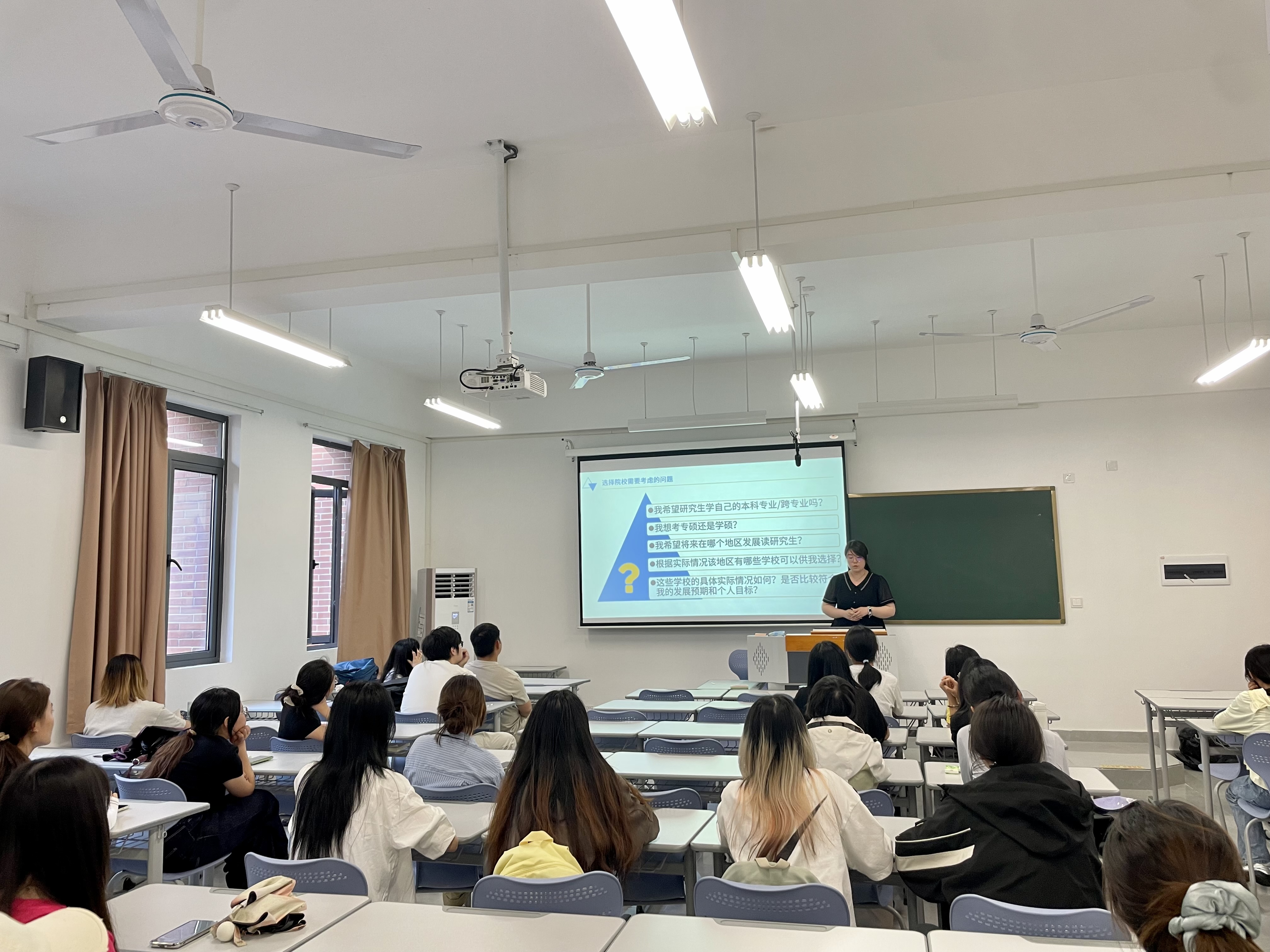 在互动答疑环节,同学们积极提问,问题涉及如何平衡日常课程与备考复习、如何提高记忆效率、如何缓解考前焦虑等具体问题。学长学姐们结合自身经验耐心解答,并鼓励大家保持信心,持之以恒,以积极的心态迎接考试挑战。