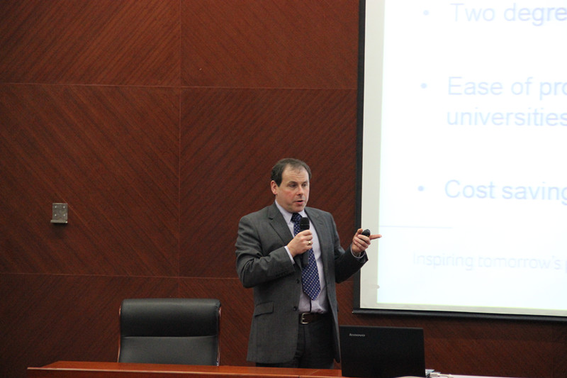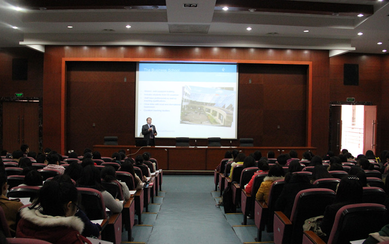 2015年3月18日中午12:30四教报告厅座无虚席,beat365邀请英国哈德斯菲尔德大学的Wayen Fidder教授,就“管理会计在企业中的应用”以及对哈德斯菲尔德大学课程及其评估标准开展英语讲座,讲座由beat365教务科科长谢建平主持。