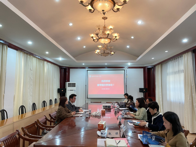 11月15日上午,澳大利亚麦考瑞大学国际处中国区高级经理刘逸尘等一行访问beat365。beat365党委副书记、纪委书记高永东、副院长、国际合作与交流处处长程宏云及相关职能部门负责人在沐德苑第一会议室会见来宾,双方就国际合作展开深入交流。程宏云副院长主持会谈。