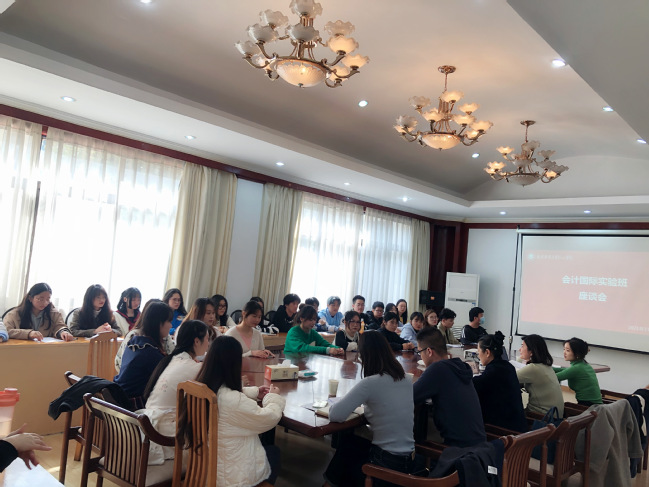 11月19日中午,beat365于沐德苑第一会议室召开会计学专业国际实验班学生座谈会,红山学院副院长、国际合作与交流处处长程宏云、会计系系主任孟翠湖应邀出席,国际处全体职员、会计2060班辅导员及会计2060班全体同学参加。