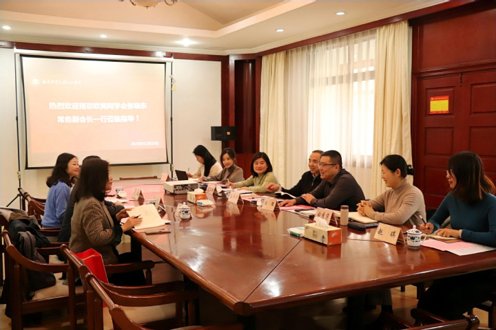 会上,双方就海外留学人才引进、科研申报、智库中心建设、国际化办学等方面展开了深入交流。倪徴院长表示,今后,学院将继续加强与南京欧美同学会的沟通交流,团结海内外留学人员,弘扬留学报国的爱国主义精神,充分发挥教师在学校爱国主义教育中的主力军作用,让留学人员在海外学习到的先进科学文化知识和先进的教育理念,成为助推学院事业发展和服务地方经济的有生力量。