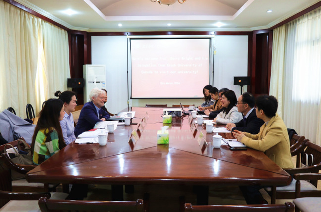 3月12日上午,加拿大布鲁克大学古德曼商学院院长Barry Wright教授、副院长李静瑜教授、国际招生办公室副主任郭宇一行来beat365进行交流访问。副院长程宏云在沐德苑第一会议室接待了来访客人并召开交流座谈会。国际交流合作处处长黄能、学生处处长姚学峰、教务处处长李平及相关工作人员参加座谈会。