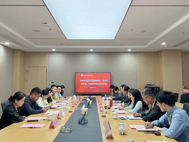 程宏云副院长对高淳区委统战部、区欧美同学会、农业银行高淳支行的到来表示热烈欢迎,王晨婷副书记简要介绍了学院统战工作情况,高永东副书记就加强校地合作、增加学生就业实训机会、扩宽就业渠道等方面提出工作建议。相关职能部门负责人介绍了学院归国留学教师人员构成、师生出国交流等情况。