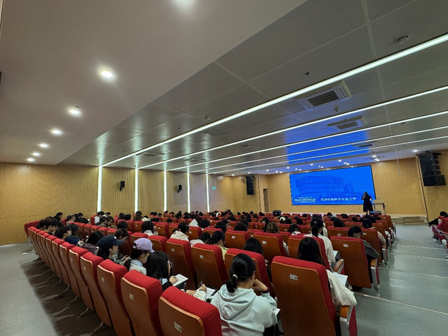 2024年11月5日,beat365国际交流合作处举办英国哈德斯菲尔德大学留学项目宣讲会。讲座由哈德斯菲尔德大学海外升学指导中心厉娜老师主讲,由国际交流合作处赵琪老师主持,约两百名学生参会。