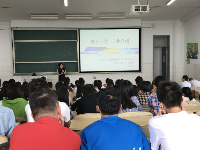 电子商务专业负责人徐利敏老师在专业教育中介绍了电子商务专业的发展基础、专业特色、培养目标以及课程体系设置。她介绍说,电子商务专业特色主要体现在:一是适应市场需求,分类培养应用型电子商务人才;二是重视实践实验教学,注重实践技能和创新思维训练,以三类实践和三个课堂作为支撑;三是以“三化融合”促进教学水平提升,以国际化、信息化提高电商人才培养质量。随后,她介绍了本专业的培养目标,电子商务专业定位于服务地方经济建设特别是江苏经济社会发展的需要,培养适应国家经济社会发展需要、具有扎实经济与管理理论基础、掌握现代信息技术、熟悉电子商务实务运作、系统地接受电子商务和移动商务技术与运营的基本训练、熟悉电商发展新趋势、综合素质高、具有强烈的社会责任感和开拓创新精神、能够从事电子商务运作与管理的应用复合型人才。从这一目标出发,就必须在课程体系设置和能力培养要求两个方面来制定专业培养计划,使学生能够明确本专业课程设置的全貌、课程关联以及其在课程中应注重掌握的能力。最后,她强调了大学生活中人际交往等方面应注意的问题,希望新生们能够尽快适应大学生活。