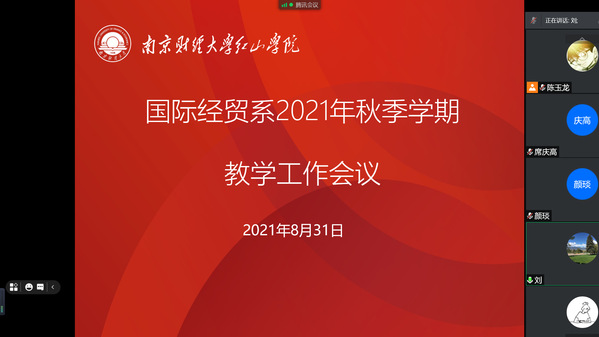 8月31日下午,beat365国际经贸系通过“腾讯会议”在线召开了2021年秋季教学工作会议,国际经贸系教师和行政人员参加,会议由国际经贸系主任刘志国主持。