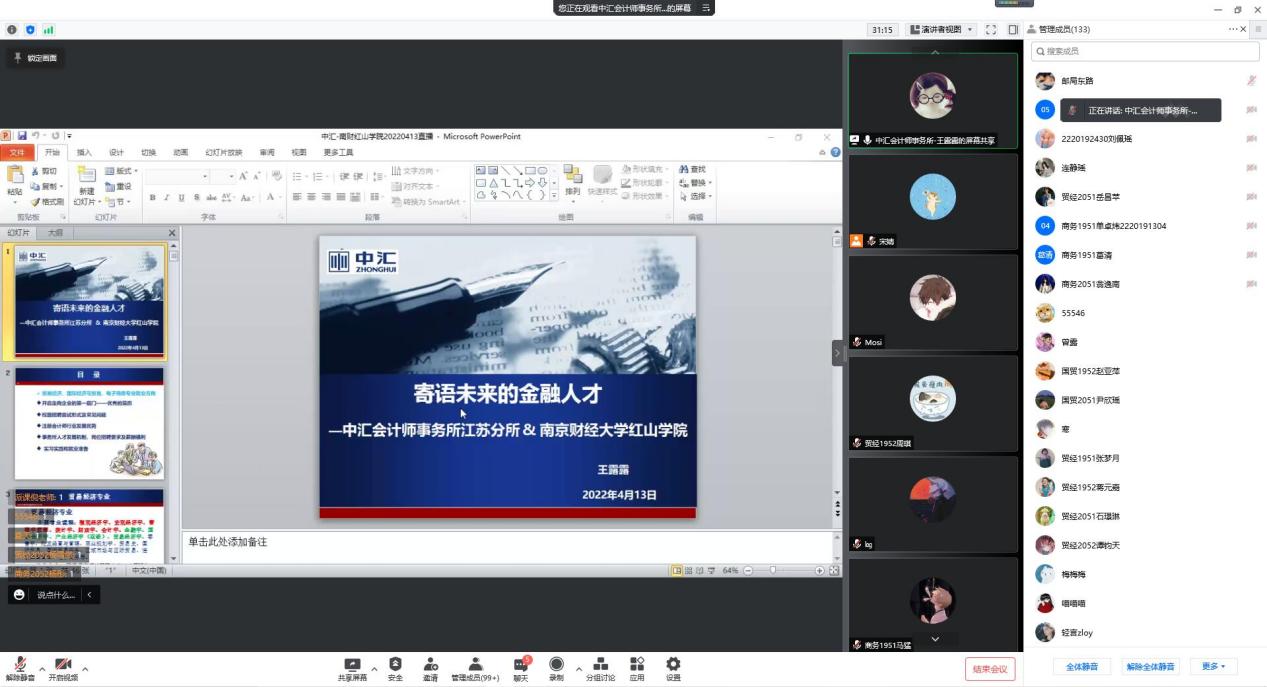 中汇会计师事务所合伙人、人事总监王露露女士线上宣讲