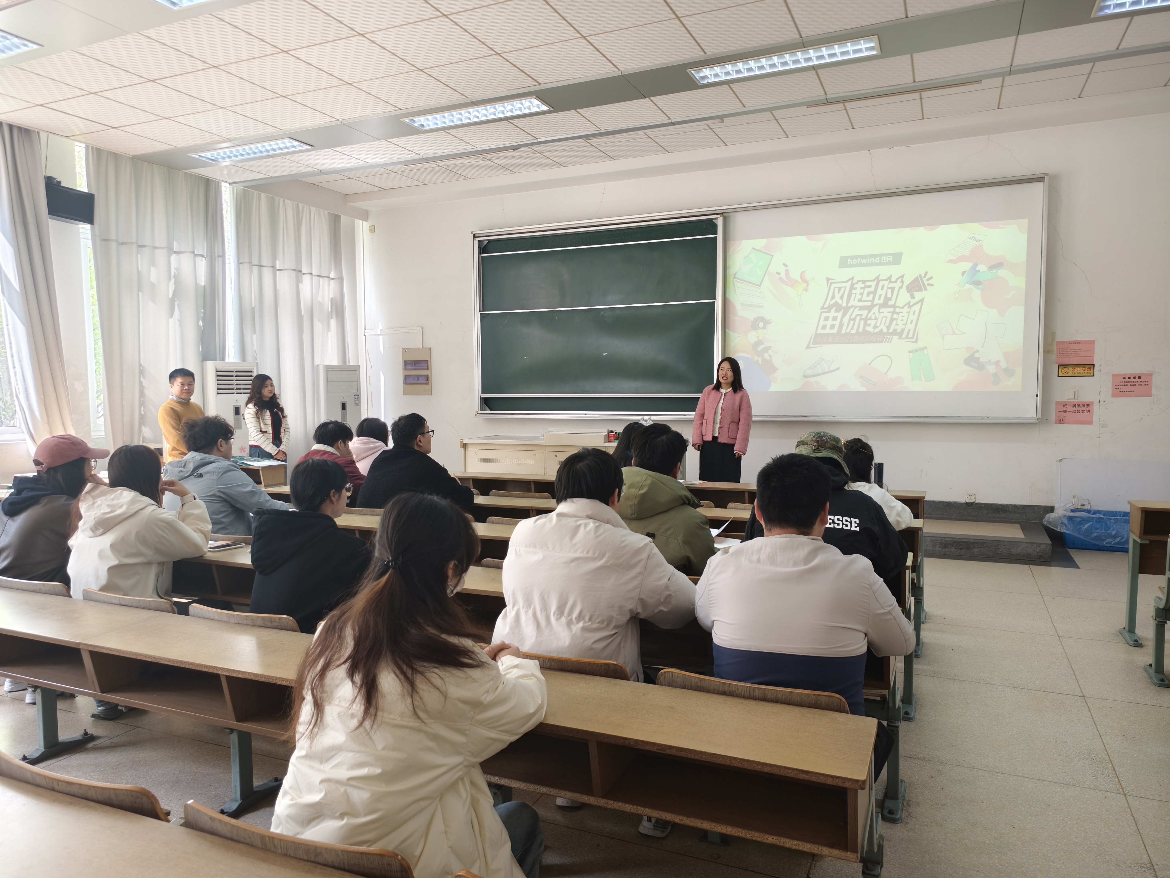 宣讲会上,龚意芳经理就热风集团发展历程、主营业务、发展规划等情况做了简要的介绍。她指出,热风集团年深耕零售连锁近三十年,凭借其完备的商品供应链和强大的市场洞察力,展现出良好的发展潜力。她着重讲解了集团的人才招聘政策、薪资待遇及岗位晋升机制,并强调集团的高质量发展离不开高素质人才,人才是第一资源。她希望在座的同学们要全面了解集团现状和发展前景,积极投递简历参加面试,力争加入集团,实现个人与企业共同成长。