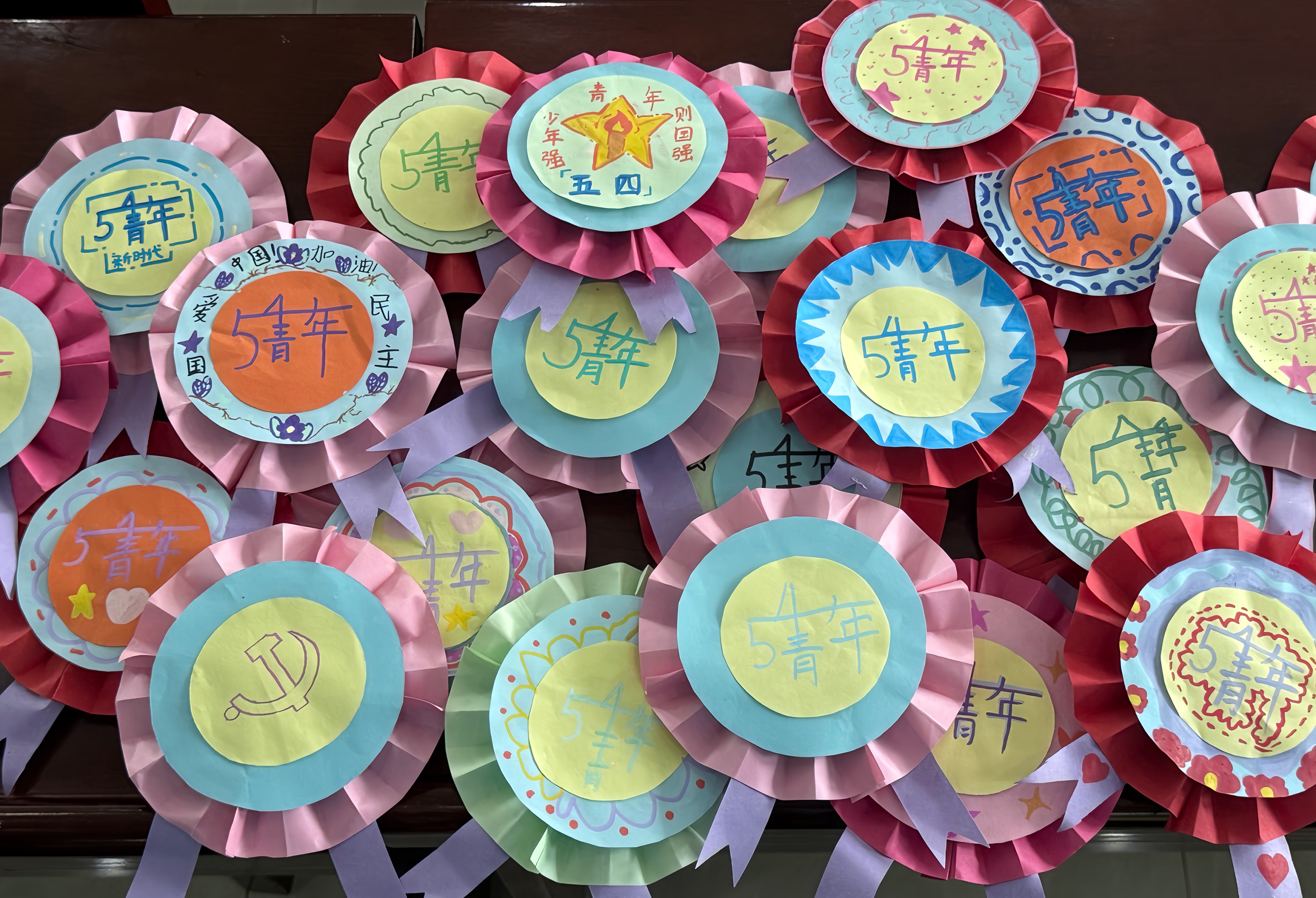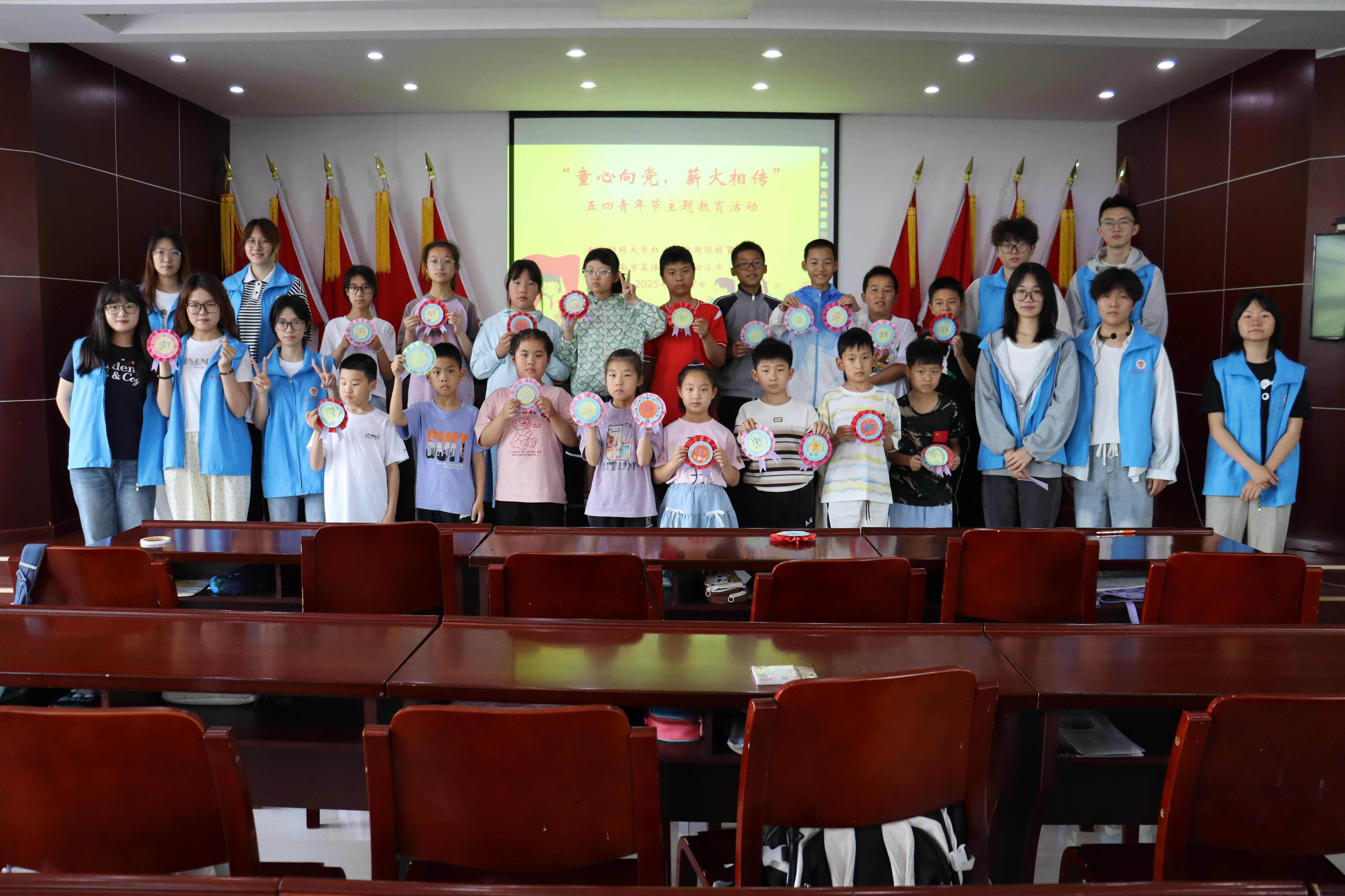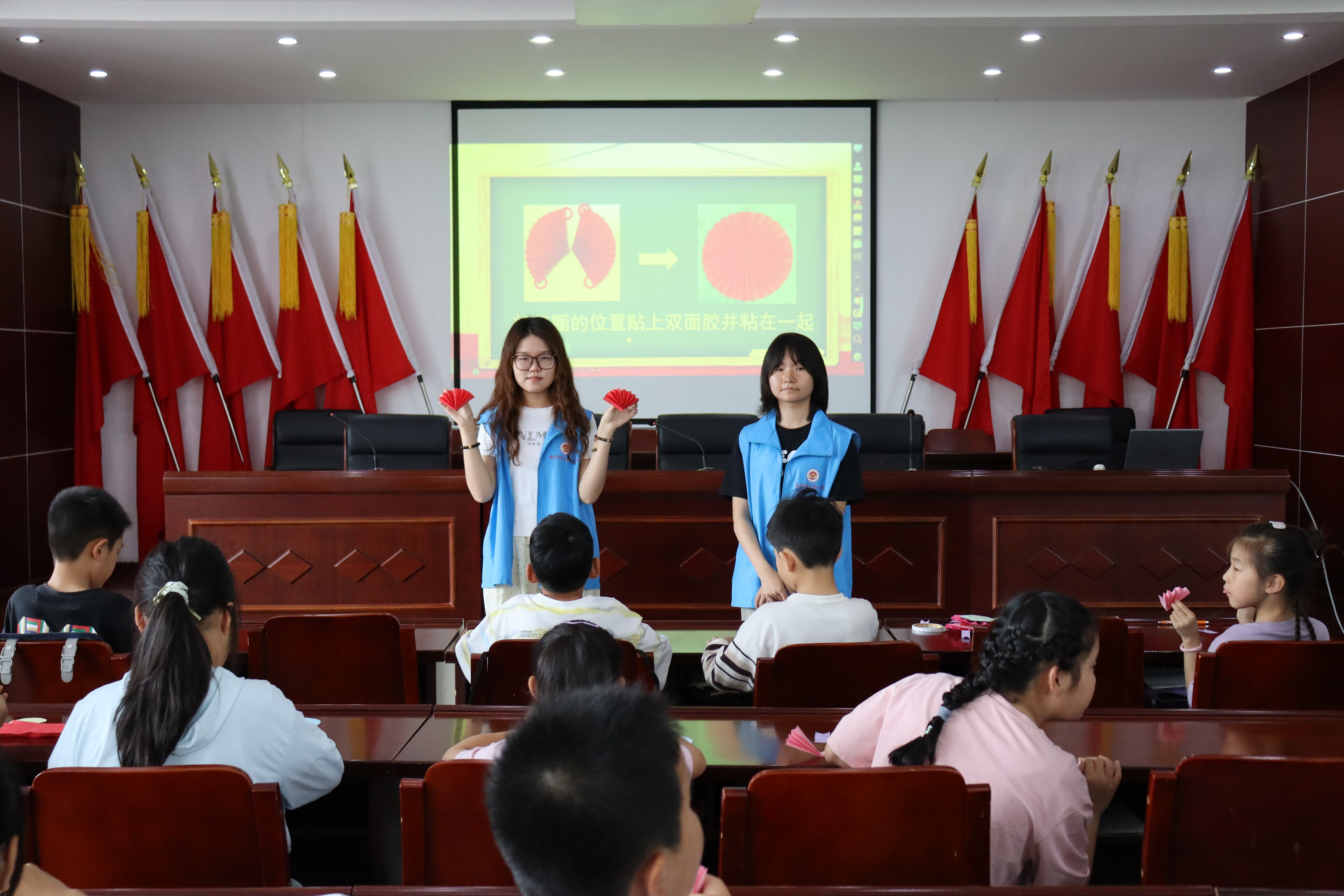 志愿者指导东坝小学学子制作“五四小勋章”