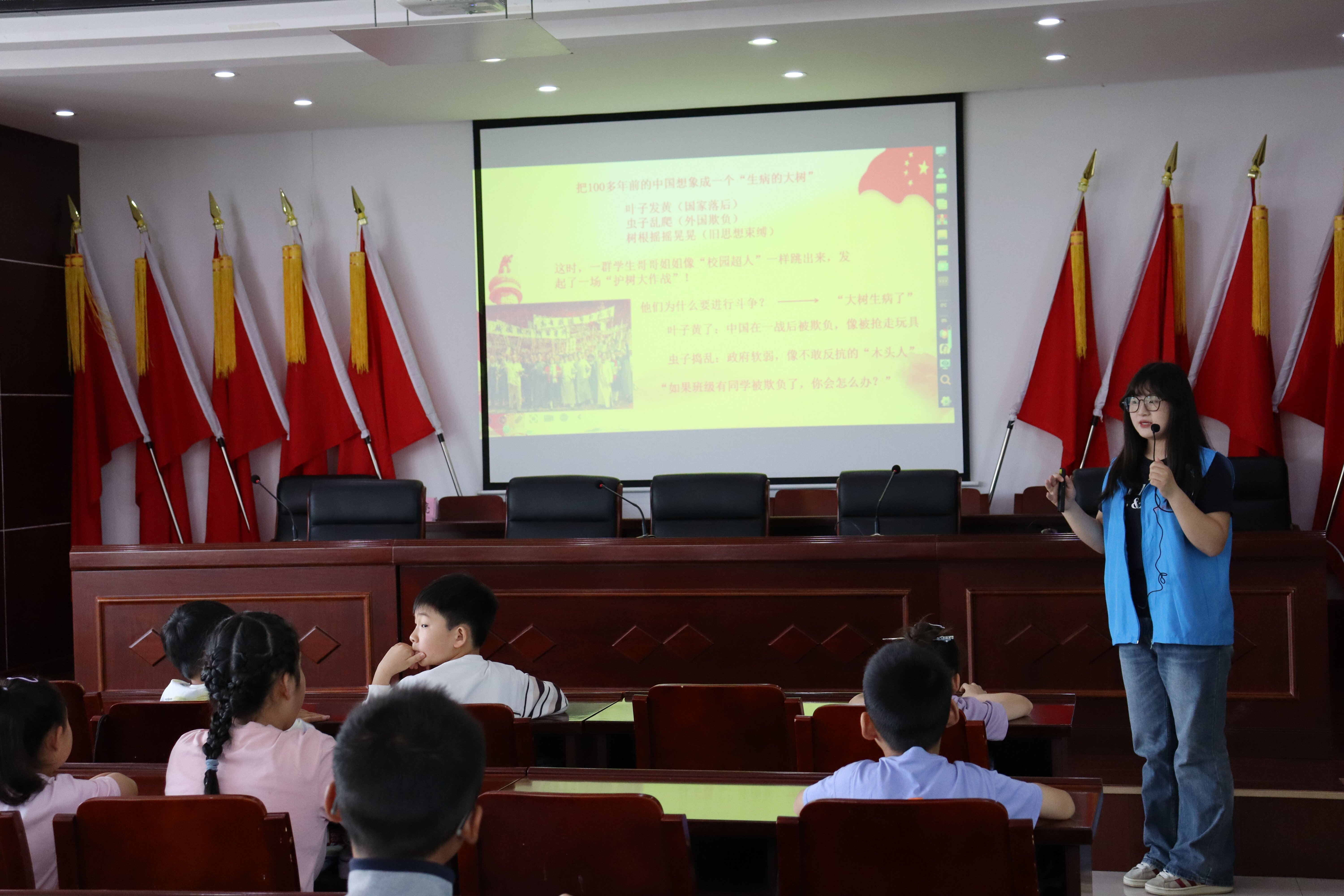 为进一步贯彻落实习近平总书记对“‘大思政课’我们要善用之”的讲话精神,激发青少年爱党爱国情怀。5月17日上午,beat365与高淳东坝中心小学携手开展“童心向党 薪火相传”主题志愿服务宣讲活动。东坝中心小学校长陈迎兵,院党总支副书记陈玉龙,团总支书记宋婧,“绿禾”志愿服务队11名大学生志愿者以及东坝中心小学17名小学生共同参加。