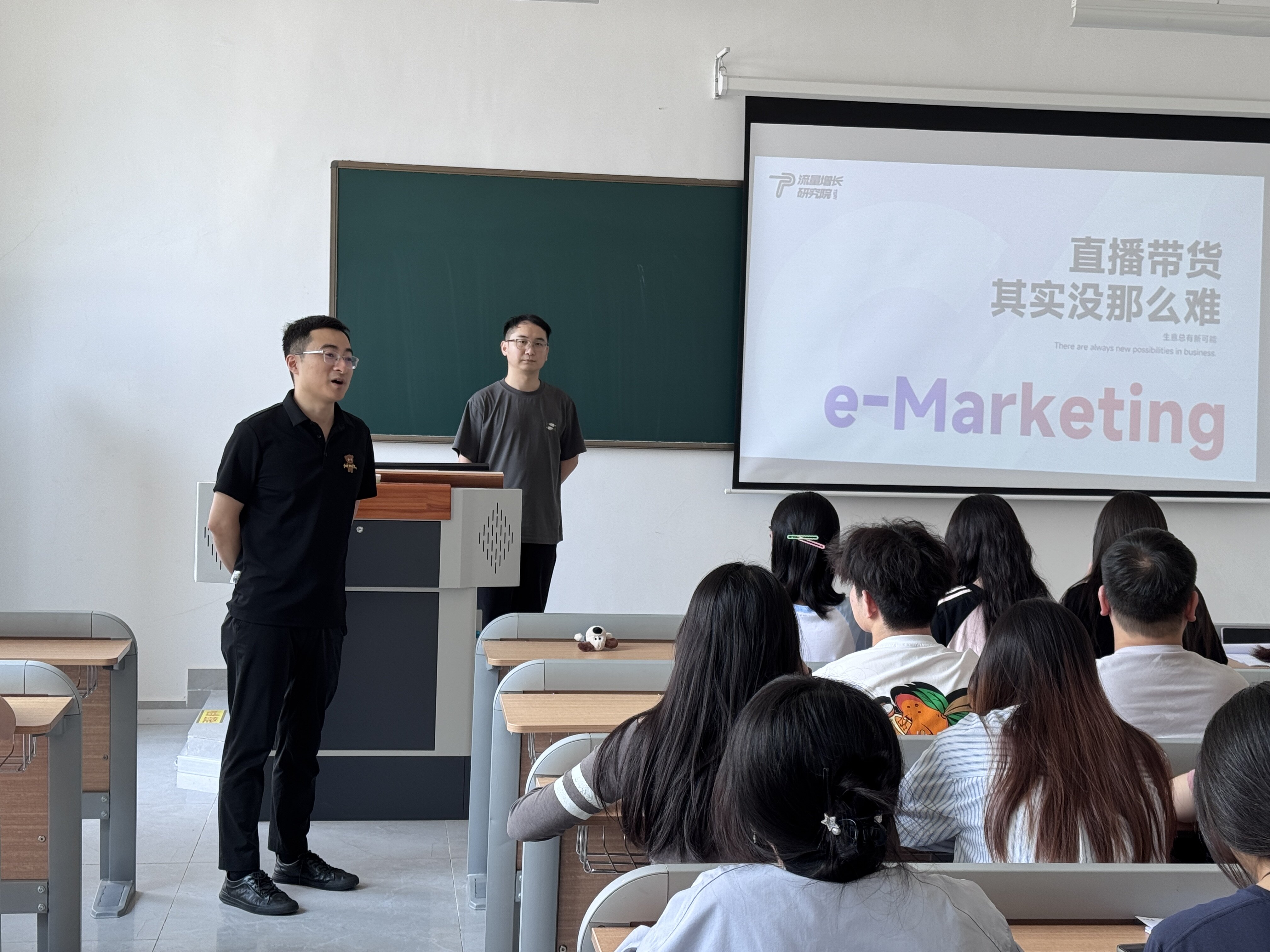 陈玉龙书记简要介绍了两位分享者的就业创业情况并对他们的到来表示热烈欢迎。他表示,举办此次活动旨在带领同学们深入了解直播带货的底层逻辑与实操技巧,以及提供切实有效的就业创业引导,助力电子商务专业学生提升实践认知水平。