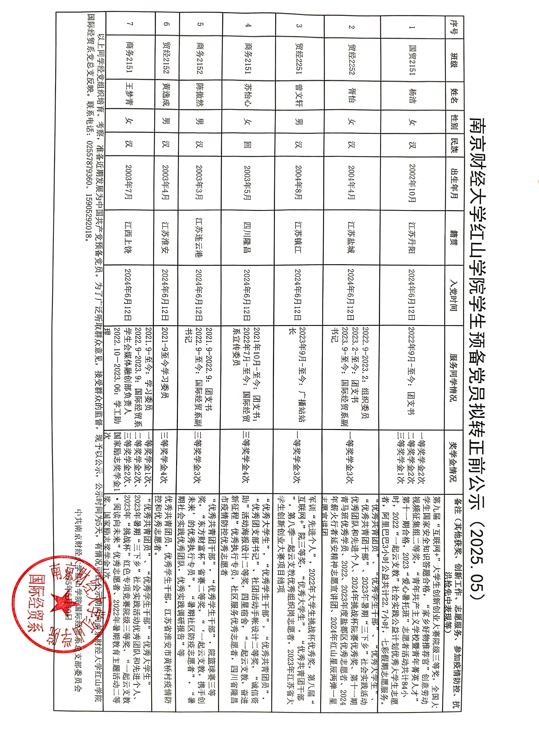 根据党员发展的有关规定,经beat365英国官方网站国际经贸系党总支考察和讨论,近期拟将杨洁等7位同志从中共预备党员转为中共正式党员,现将基本情况予以公示,敬请广大党员和群众监督。
