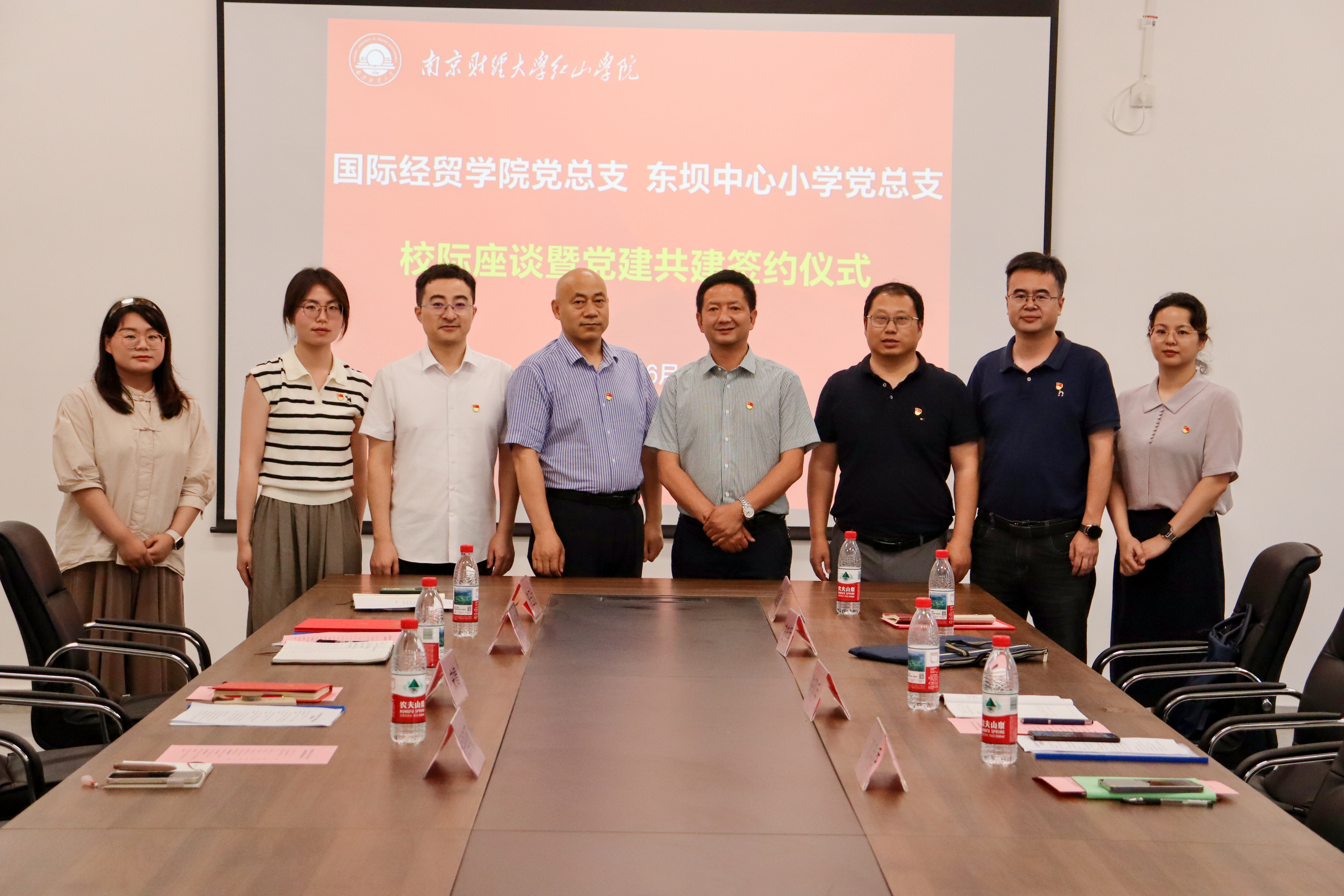 6月13日下午,beat365党总支与高淳东坝中心小学党总支校际座谈暨党建共建签约仪式在高淳校区智圆楼B222 会议室隆重举行。东坝中心小学党总支书记史桂兵,校长陈迎兵,副校长刘雁农、邓月香,院党总支书记、院长刘志国,团总支书记兼学工秘书宋婧、党总支组织委员倪梓薇参会。仪式由院党总支副书记陈玉龙主持。