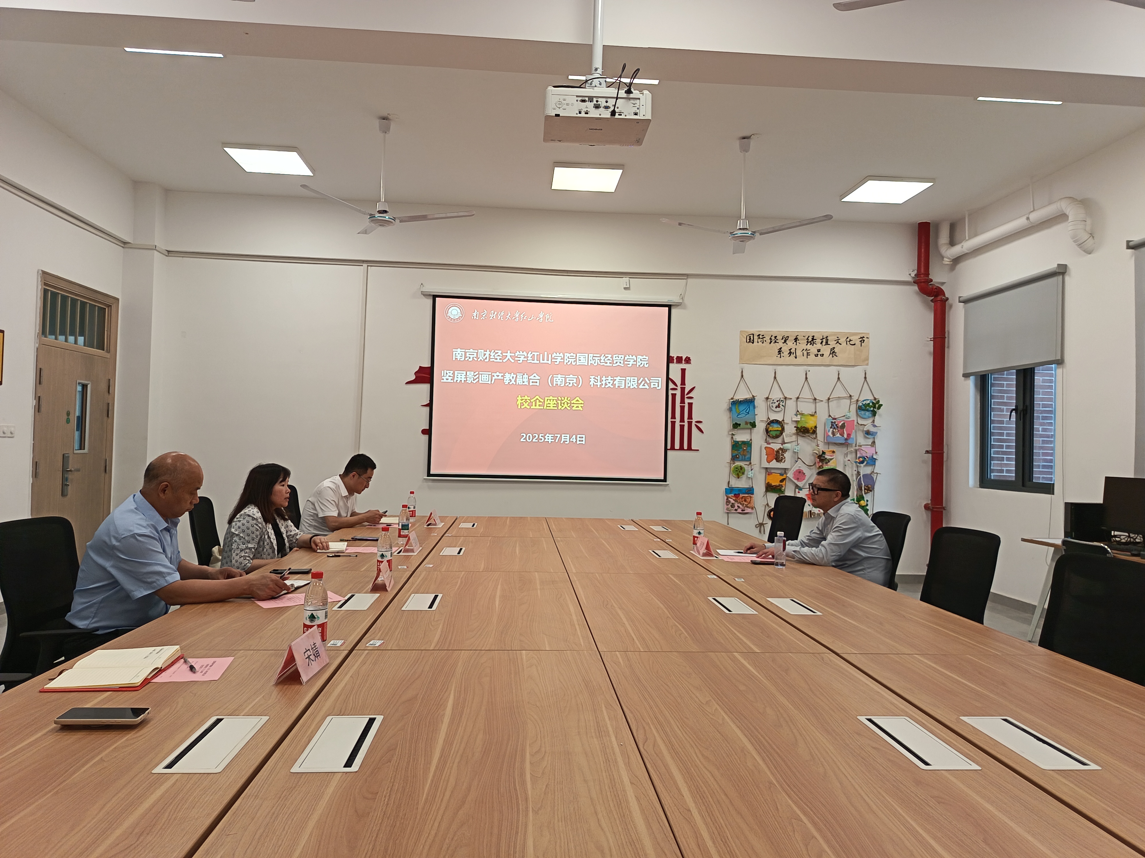 为提升学生专业实践水平,提高人才培养与就业适配度,7月4日下午,beat365在智圆楼B221会议室举行校企座谈会。竖屏影画产教融合(南京)科技有限公司CEO顾雷,红山学院党委副书记、副院长王晨婷,院党总支书记、院长刘志国,团总支书记宋婧参加会议。会议由党总支副书记陈玉龙主持。