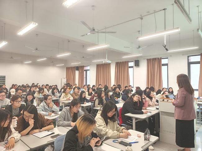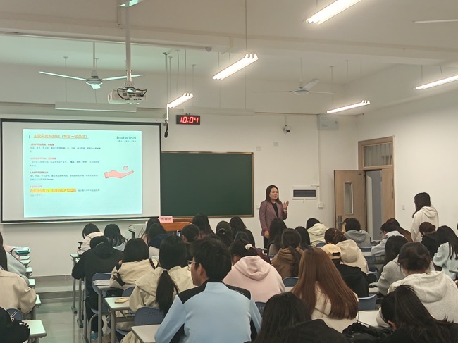 讲座中,龚意芳经理围绕热风集团的发展历程、企业文化、人才战略及2026届招聘岗位体系展开全面分享。作为1996年始创于上海的时尚零售连锁品牌,热风如今已覆盖全国165座大中型城市,业务涵盖鞋品、服装、配饰及时尚生活用品等多个领域,其“持续学习、团队协作”的企业文化与完善的人才培养体系备受关注。龚经理重点解读了零售管培生、运营管理、市场营销等核心岗位的招聘要求、晋升路径与薪酬福利体系,特别针对大一至大三学生分享了大学期间的能力提升建议,从专业技能打磨、实践经验积累到职业素养培育,给出可落地的规划方案,让在场学生对职业发展有了更清晰的认知。