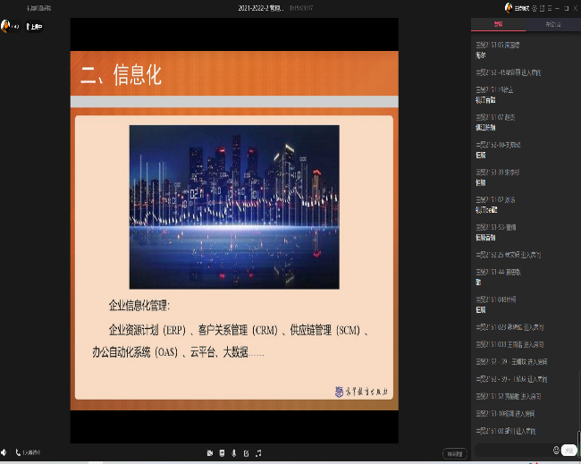 为保证教学质量,工商系还对在线教学进行检查听课,收集在线教学相关情况,分享教师在线教学经验、有特色和好的做法,结合在线教学实施状况给予及时定向指导。在工商管理系全体师生共同努力下,前两周的线上教学做到过程性考核与结果性考核相结合,确保线上线下教学同质等效,杜绝了线上“水课”。