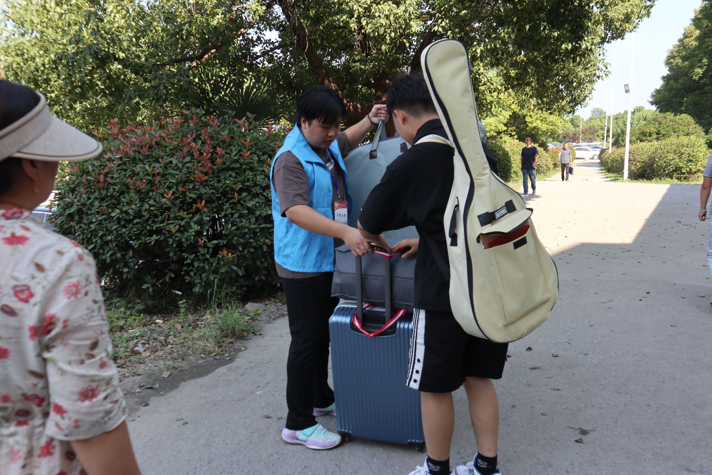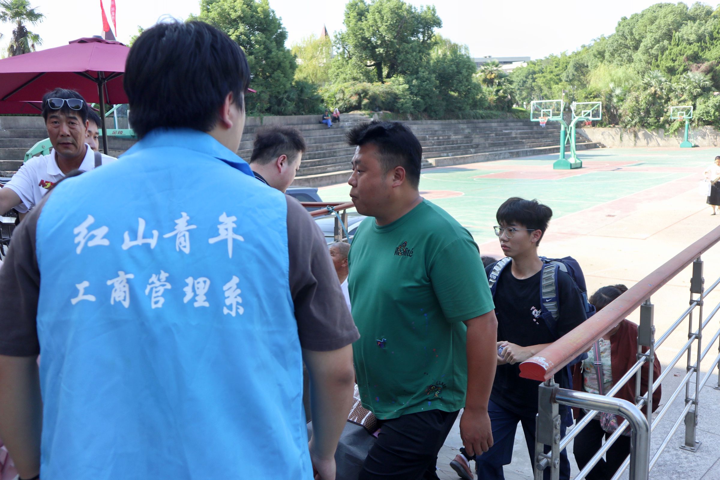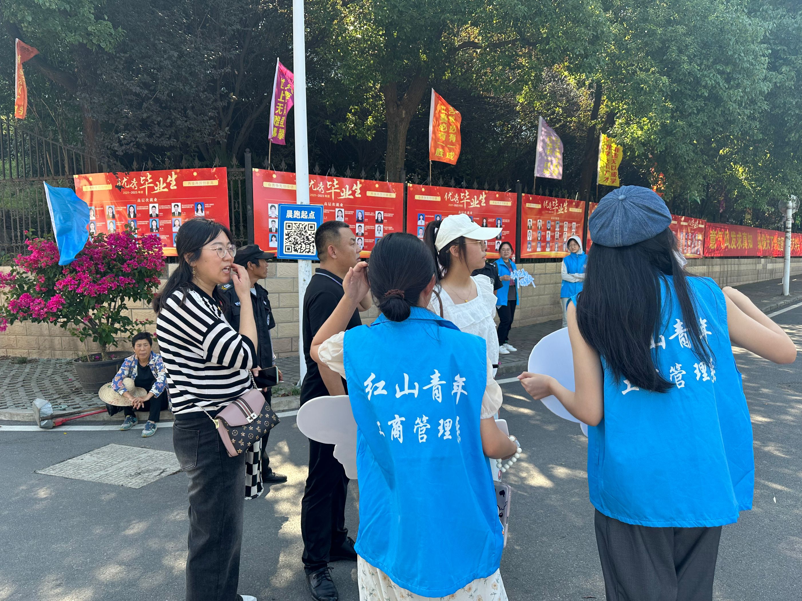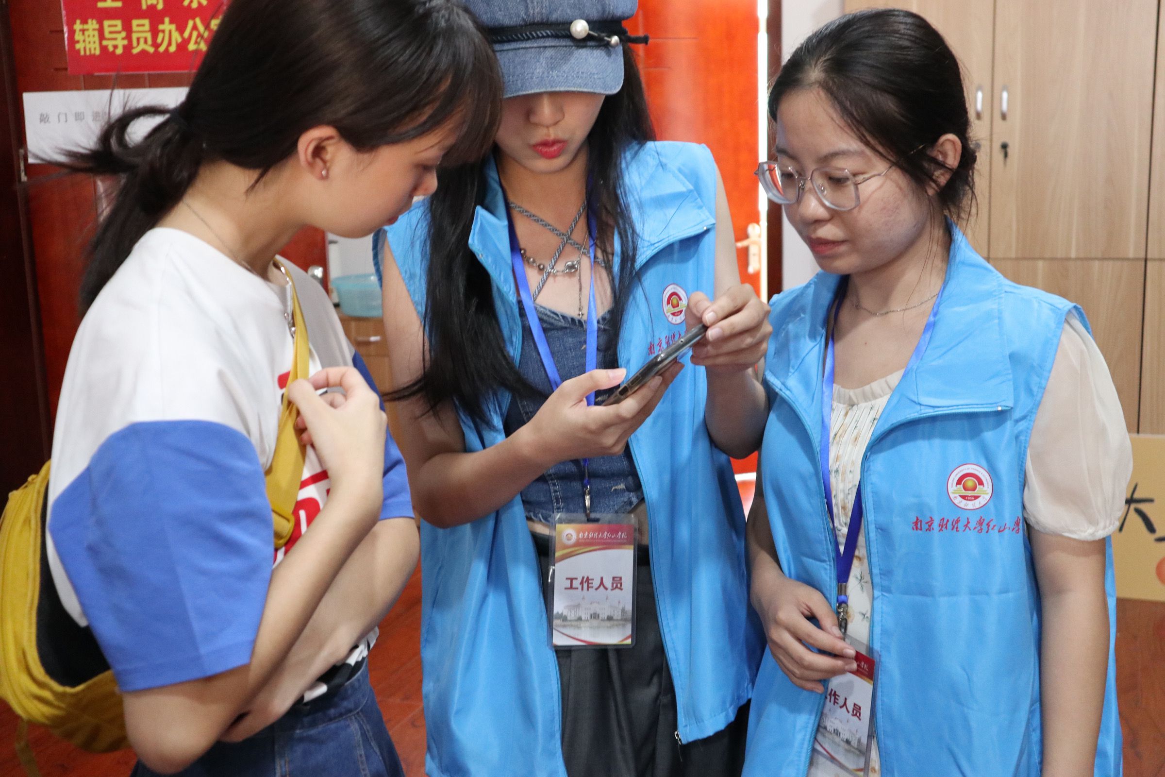志愿者用心服务,助力迎新工作。工商管理系志愿者身着“蓝马甲”,佩戴工作牌,手举迎新牌,热情洋溢,以最饱满的精神状态迎接每一位新生的到来。在校园南大门、停车场,志愿者们从学生和家长手中接过沉重的行李,将新生引导至寝室,一路上向新生介绍校园环境、展示“红山青年”精神,体现“工商领航”风貌。在教务楼走廊和辅导员办公室,志愿者们坚持“一对一”用心服务原则,带领新生进行“新生报到”、“人脸采集”和“身份核验”。从朝阳到夕阳,学院的每一个角落都有工商管理系志愿者的身影,他们无私奉献、不负韶华、尽职尽责的精神感染了每一位新生同学,充分展示了工商学子的榜样力量!