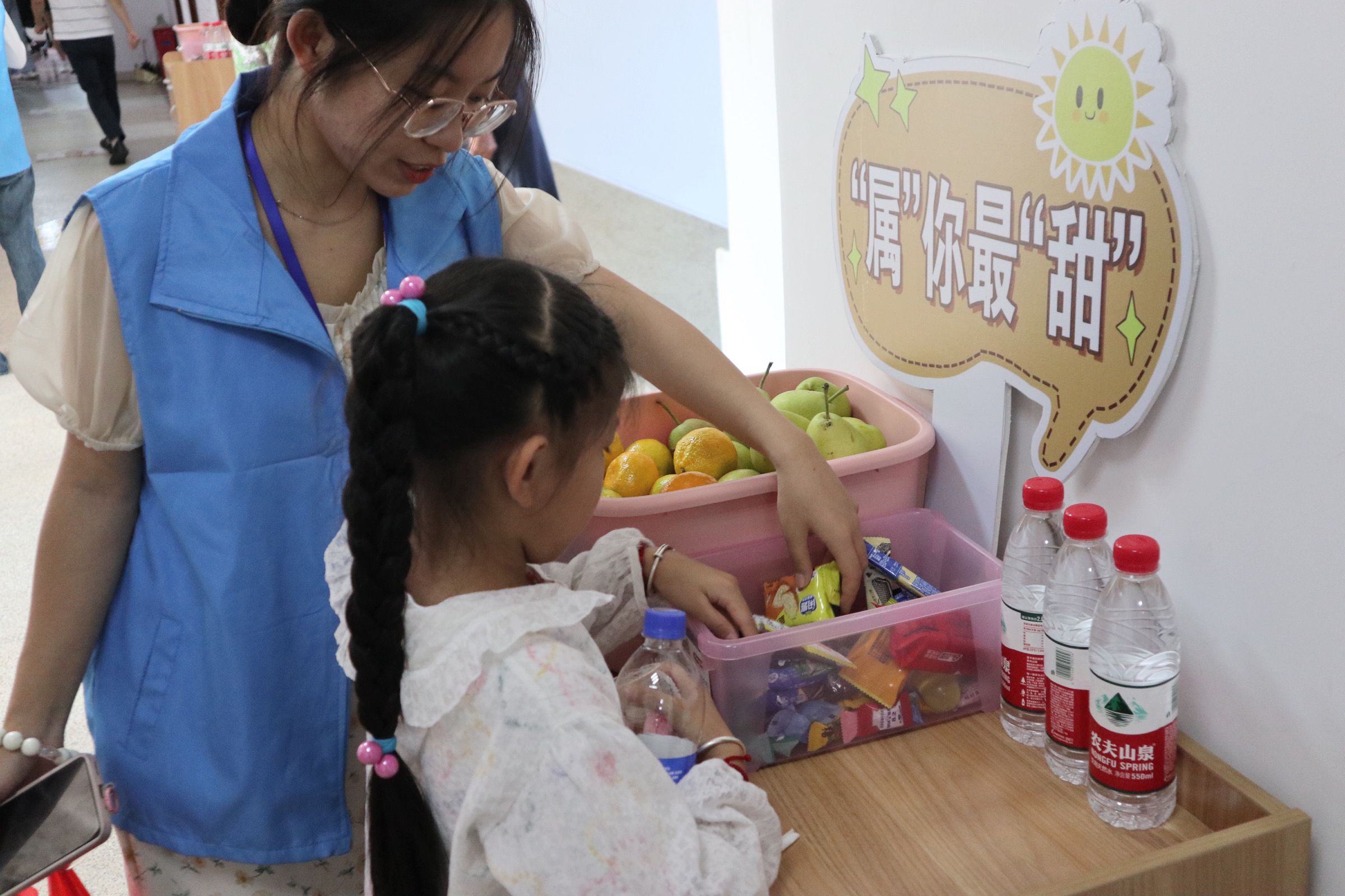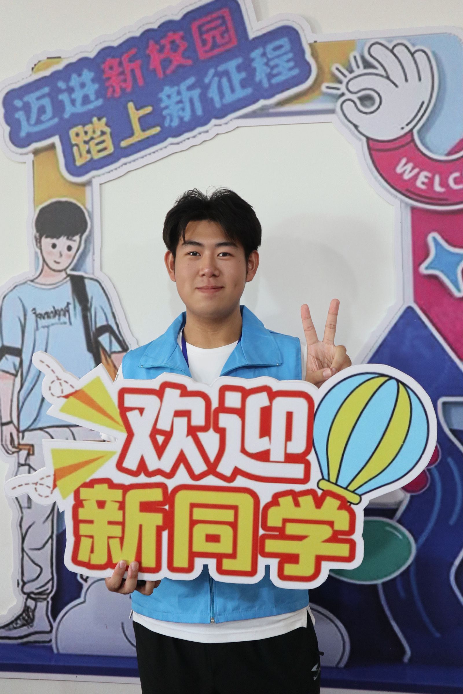 志愿者以饱满的精神状态迎接新同学