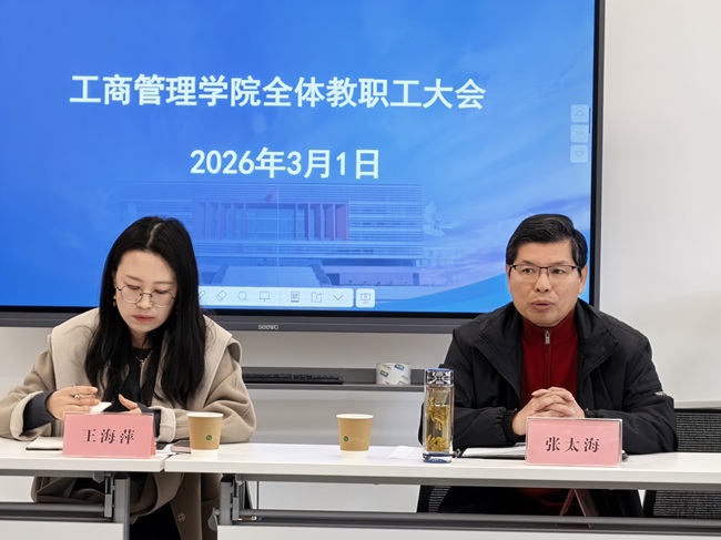 为统筹部署新学期党建、教学、科研、学生管理等重点工作,凝聚全院教职工共识与合力,确保新学期工作平稳开局,3月1日上午,工商管理学院在智圆楼B429会议室召开新学期教职工大会。红山学院副院长王晓庆应邀出席会议,工商管理学院全体教职工参加会议,会议由工商管理学院党总支书记、院长张太海主持。