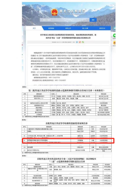近日,在黑龙江省教育厅组织的首批高校课程思政优秀教学案例遴选工作中,经组织推荐、专家遴选、会议评选和网络公示等程序,jdb电子中国官方网站刘楠老师主讲的《市场营销学》中的新零售数字赋能、新时代可持续营销案例获首批黑龙江省高等学校课程思政优秀案例。希望全院教师以此次为契机,深入挖掘专业课程本身所蕴含的思政元素,探索和创新课程思政建设方法,进一步深化课程思政教学改革,强化课程育人导向。